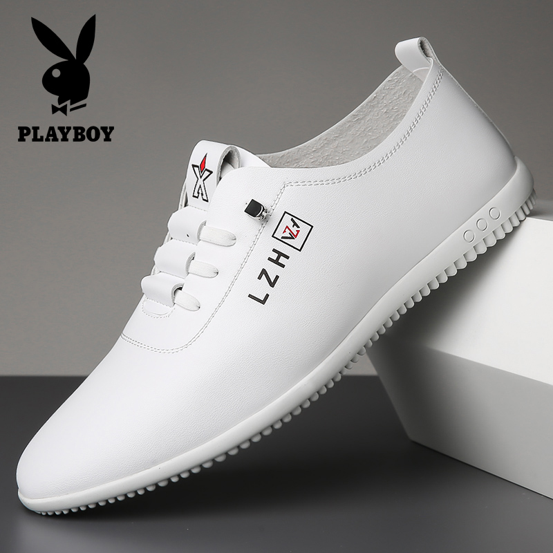 Playboy men's shoes 2025 fall leather soft-soled athleisure shoes men's leather shoes men's breathable white shoes