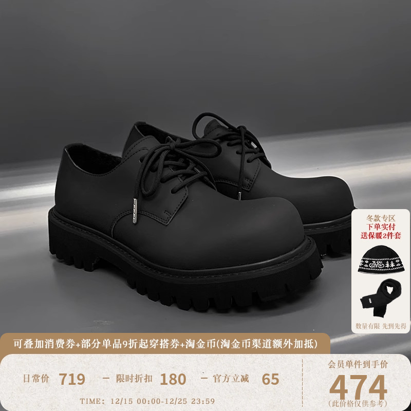A pair of loafers, men's platform soles, heightened business formal wear, black retro casual commuting, niche derby leather shoes