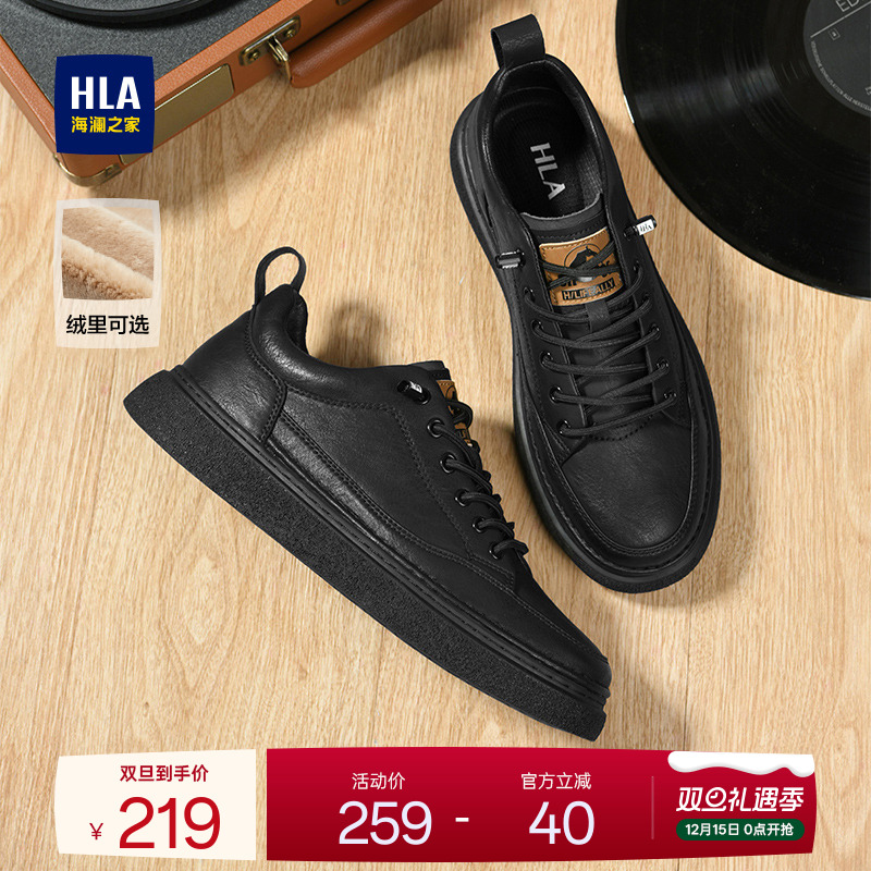 HLA/Heilan Home Men's Shoes Leather Panel Shoes Casual Leather Shoes New Fleece Autumn and Winter British Style Shoes New Men's New Men's