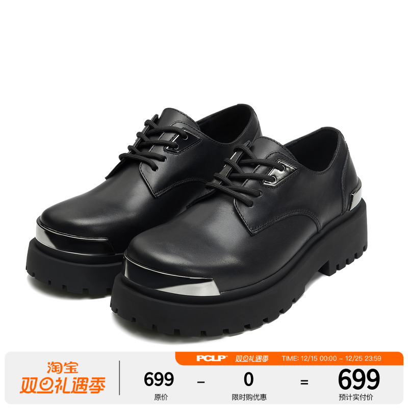 【Tan Jianci Same Style】PCLP Derby Leather Shoes Round-toed Derby Platform Leather Shoes Versatile Commuter Casual Men's Shoes