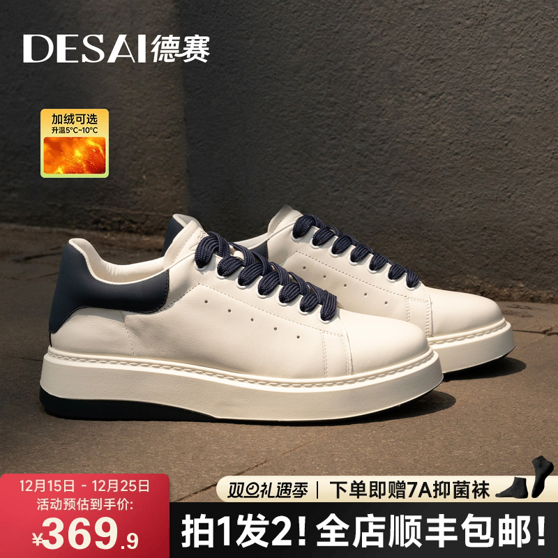 【A generation of technology bottom】Desay autumn and winter fleece thick-soled casual board shoes, men's leather white shoes, heightened men's shoes