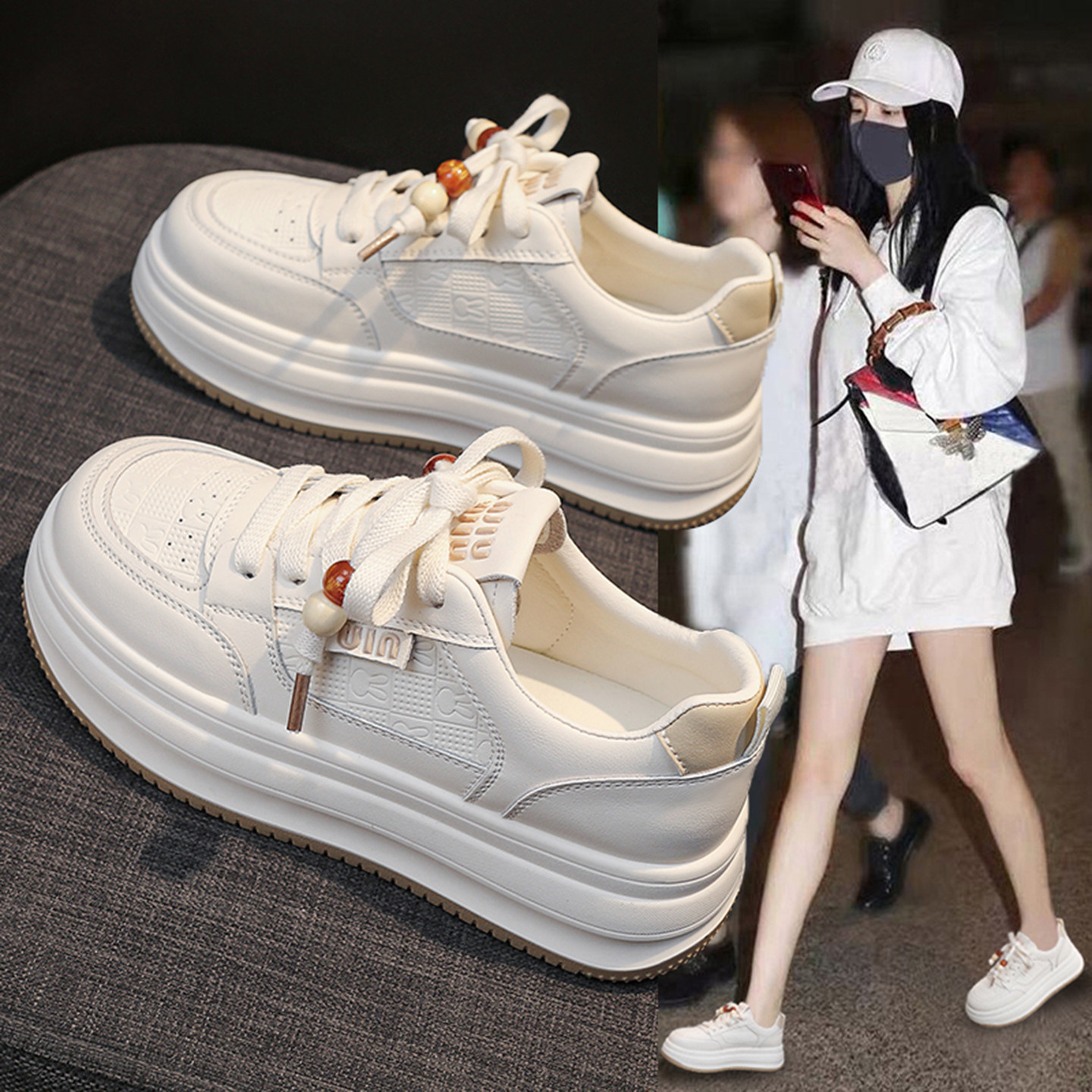 Hong Kong leather platform white shoes women's 2026 spring and autumn new popular round-toe comfortable and breathable casual board shoes