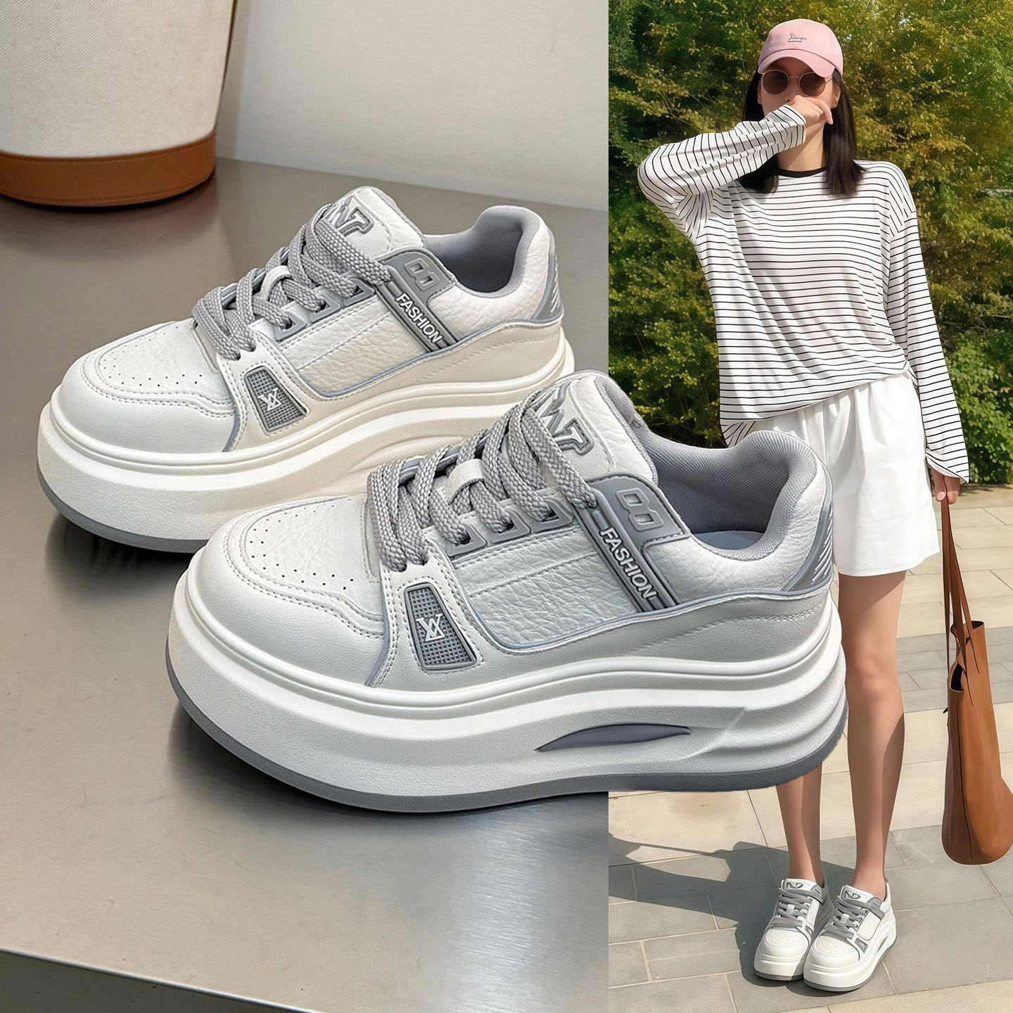 Hong Kong leather platform white shoes women's 2026 spring new popular versatile lightweight height-increasing athleisure board shoes