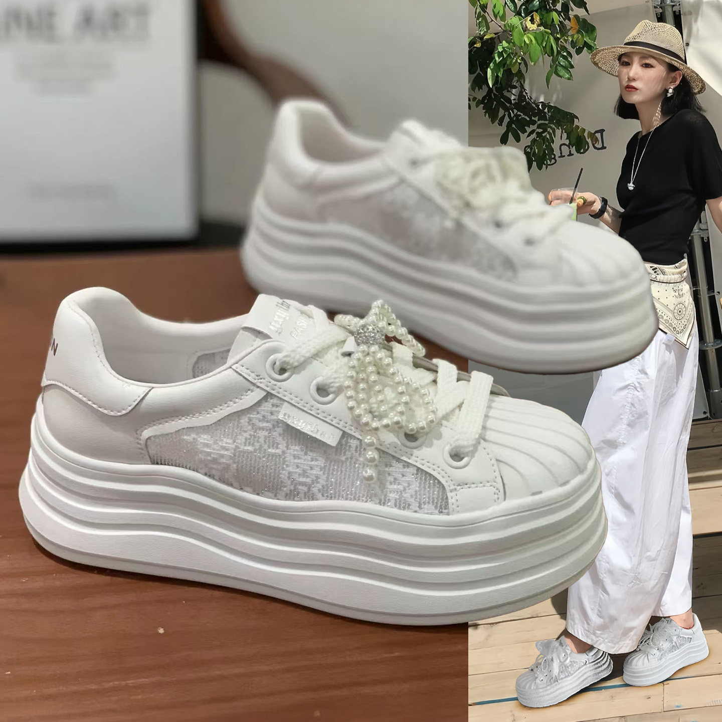 Hong Kong niche shell head mesh breathable board shoes women's 2026 summer new versatile casual platform height-boosting white shoes