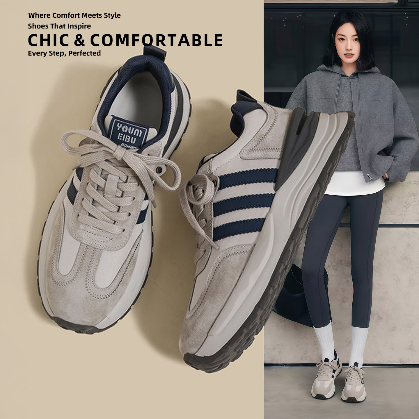 Chio2nd South Wind 4cm height-increasing nubuck cowhide German training shoes women's autumn and winter retro casual shoes sneakers