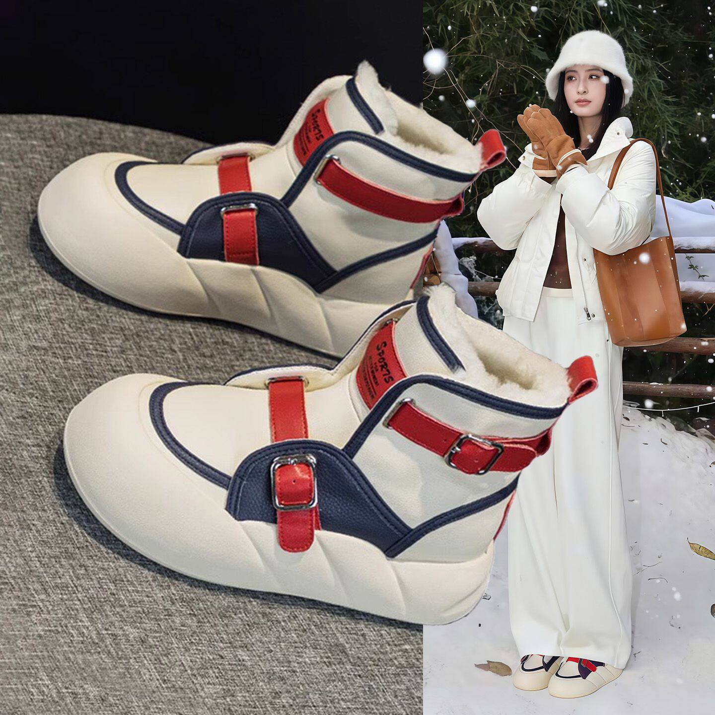 Hong Kong snow boots women's fleece thickened 2025 winter new explosive leather high-top panda casual wool cotton shoes