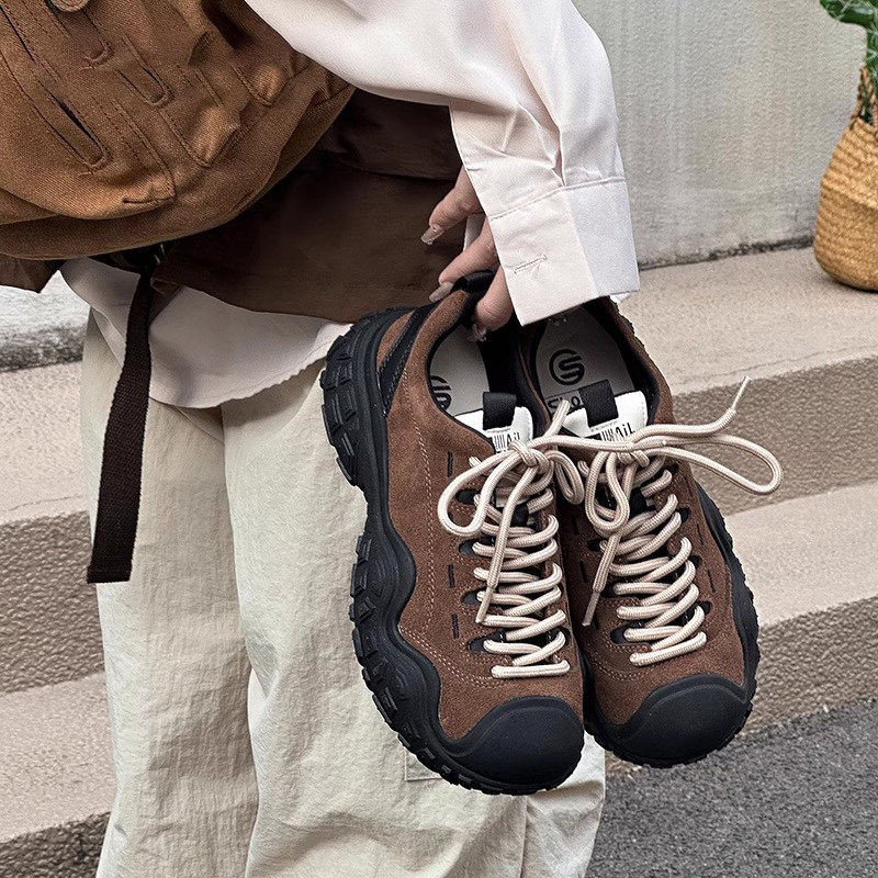 Hong Kong ugly cute hiking shoes women's 2025 spring and autumn leather retro sneakers non-slip camping outdoor dad shoes