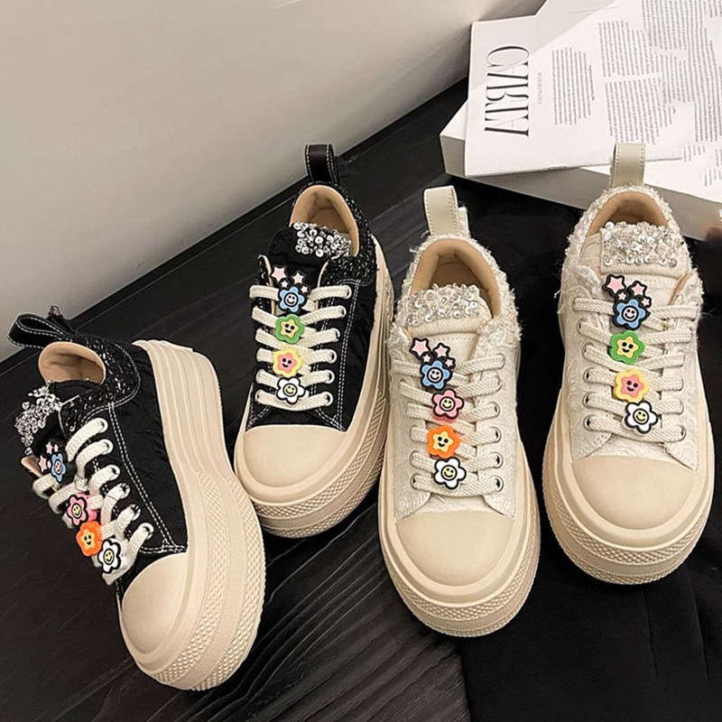 Hong Kong Zhao Lusi's same tweed cloud canvas shoes 2025 new muffin thick-soled smiley face casual whiteboard shoes