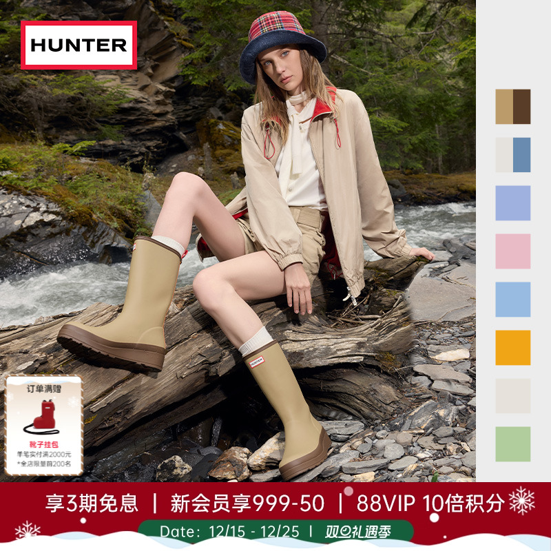 HUNTER Coolplay Women's Boots Waterproof Non-Slip Mid-Leg Boots Outdoor Camping River Tracing Rain Boots Matte Platform Heightening Women's Shoes