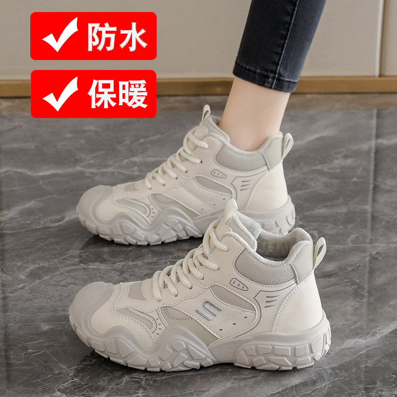 Genuine leather high-top shoes women's 2025 new winter fleece thickened snow cotton shoes non-slip soft-soled sports dad shoes