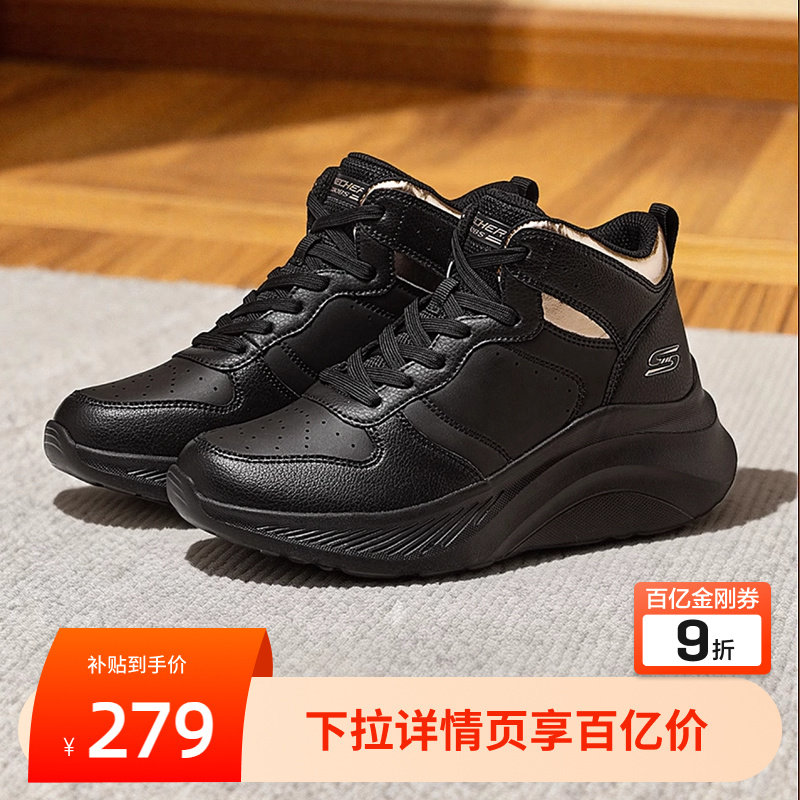 Skechers women's shoes, winter fashion, warm high-top shoes, comfortable casual sneakers, thick-soled heightening soft-soled shoes