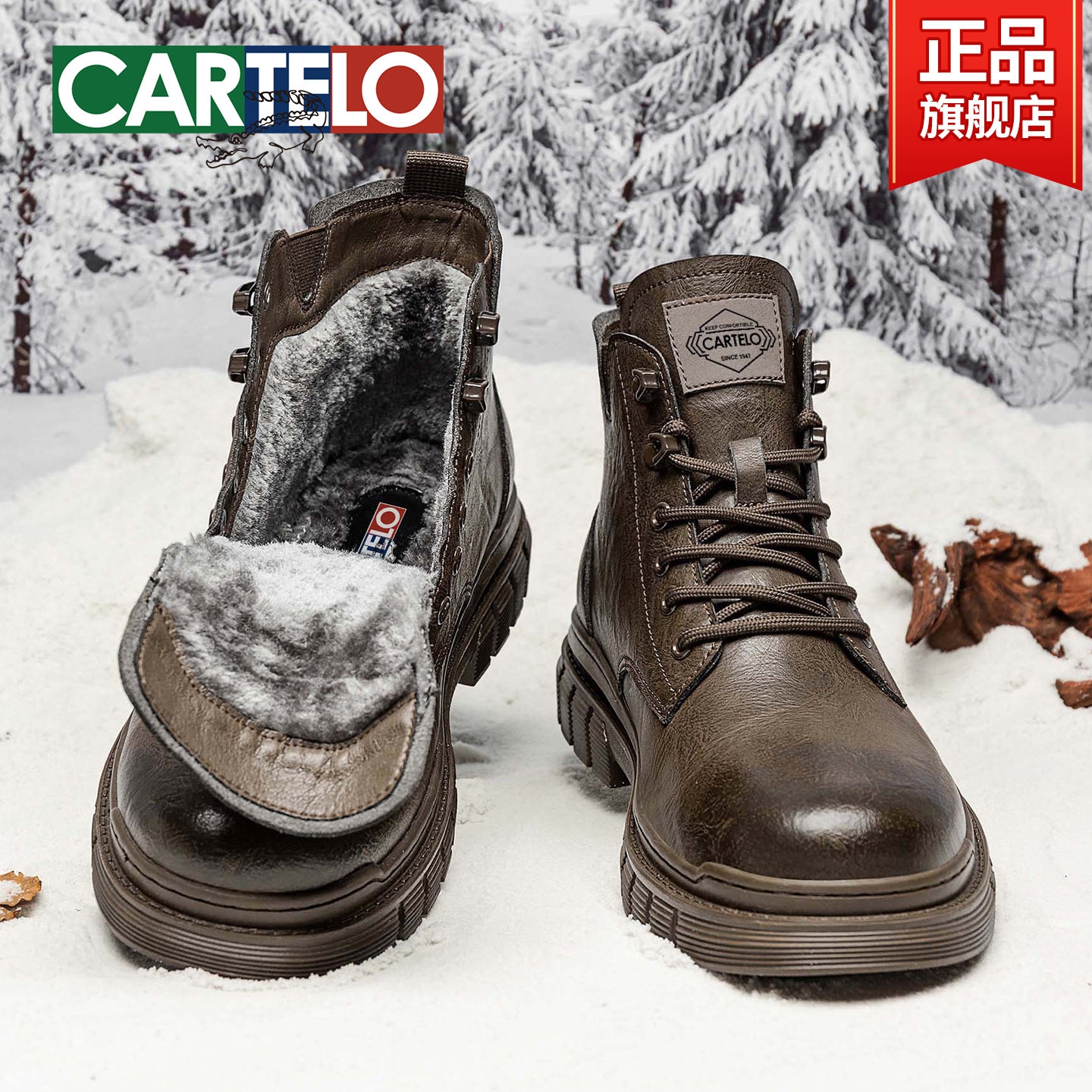 Cardillo Crocodile Martin Boots Men's Winter Fleece Warm Cotton Shoes Mid-Top Thickened Snow Shoes Men's Leather Cargo Boots