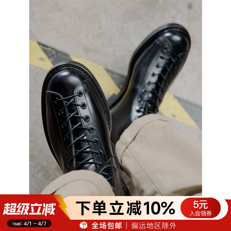 Dark fans must be included! BBS handmade polish distressed inner and outer full cowhide lace-up high-top men's boots