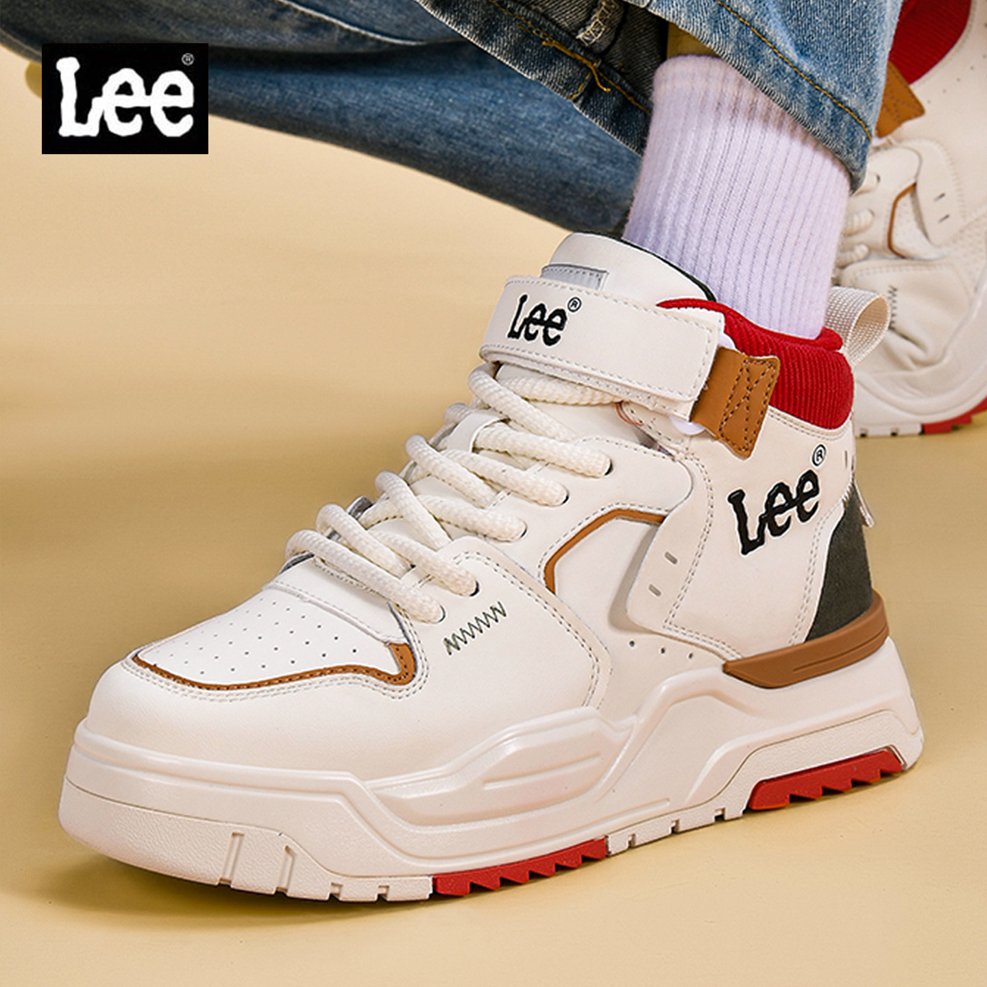 Lee shoes, men's shoes, 2026 new platform high-top shoes, spring and autumn versatility, height-increasing white shoes, athleisure board shoes