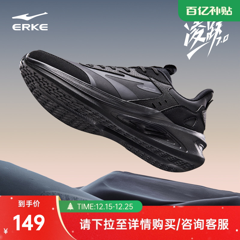Hongxing Erke shock-absorbing running shoes, winter fleece men's shoes, soft-soled waterproof sneakers, new black lightweight running shoes