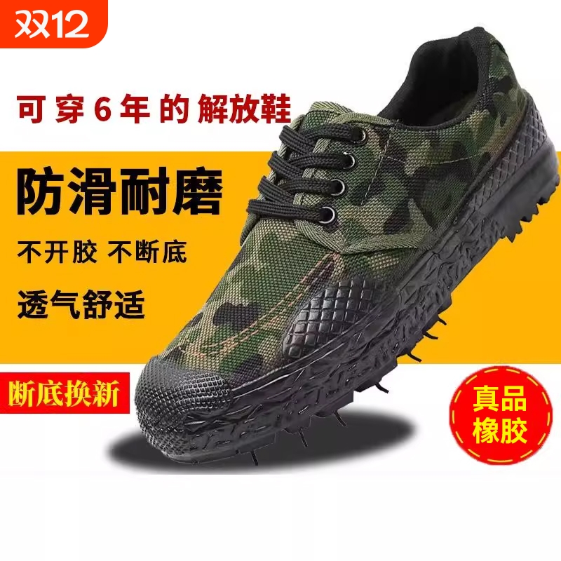 Jiefang shoes, labor protection shoes, men's and women's construction site rubber shoes, work shoes, mountaineering anti-slip, wear-resistant low-top shoes, high-top cloth shoes, camouflage