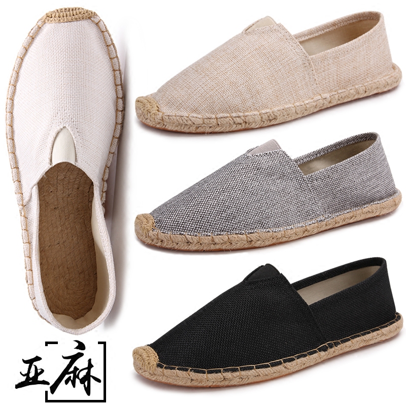 Summer kicks, straw canvas fisherman shoes, men's linen-soled lazy casual shoes, Chinese style old Beijing linen shoes