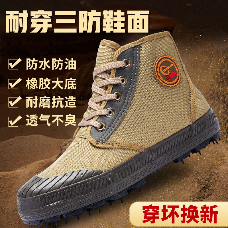 High-top waterproof liberation shoes, men's anti-slip and wear-resistant construction site work protection yellow rubber shoes, outdoor mountaineering three-proof camouflage shoes