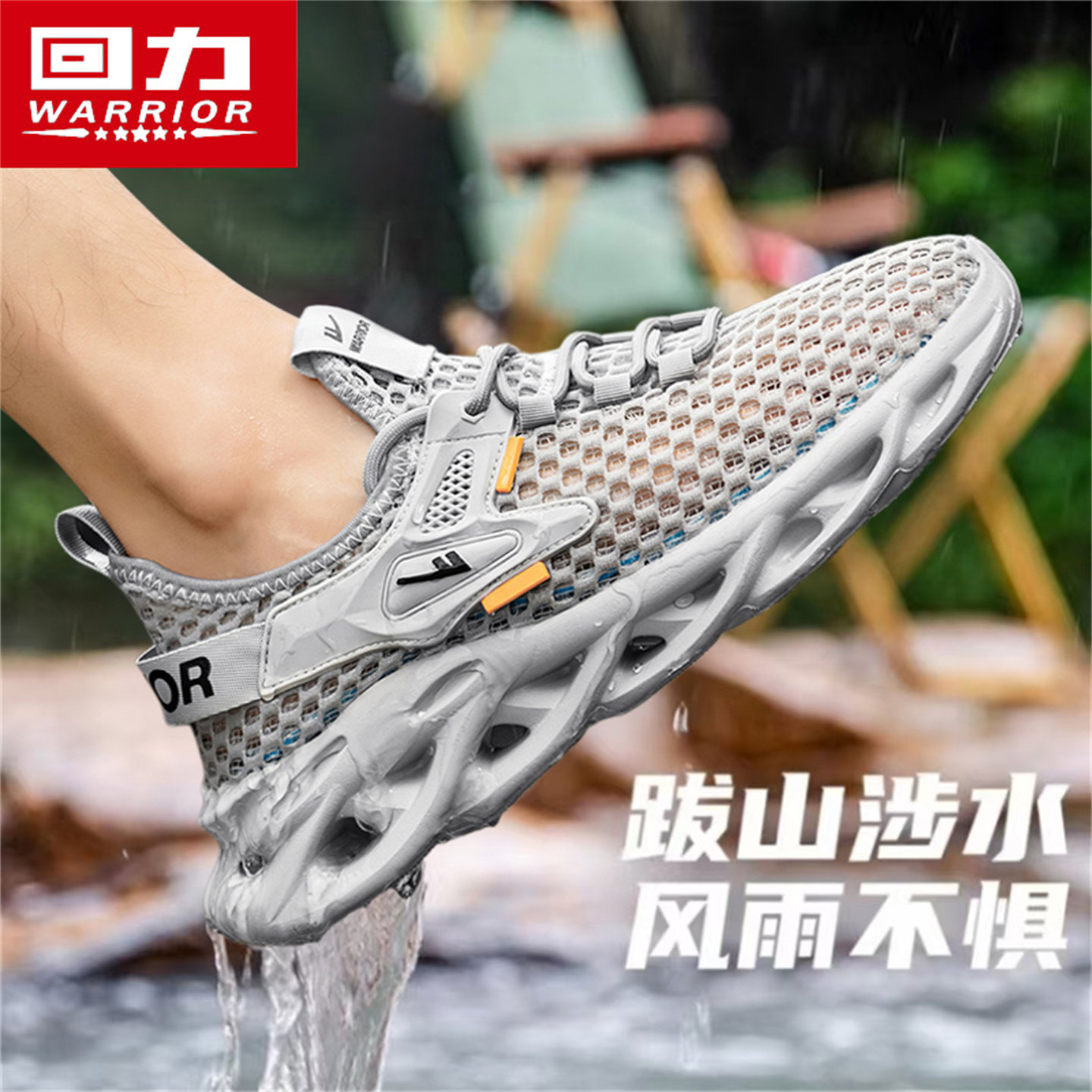 Pull-back hole sandals for men, breathable and thin hollow net shoes in summer, casual sports, lightweight and soft soles, tracing the river and wading