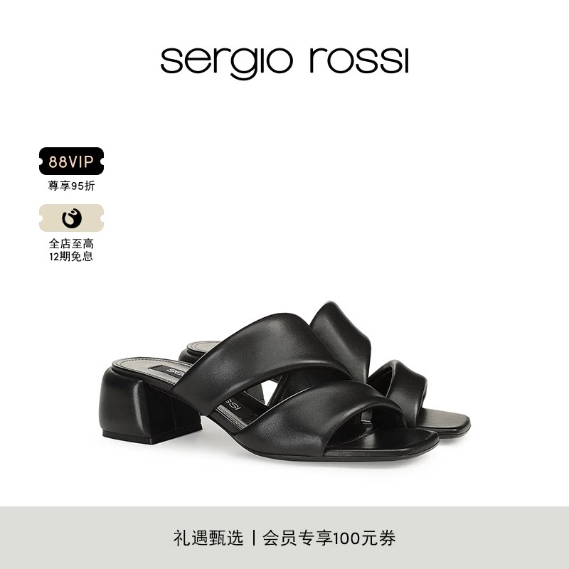 Sergio Rossi/SR Women's Shoes SR SPONGY Sheepskin Square Toe High Heels Square Heel Sandals Slippers