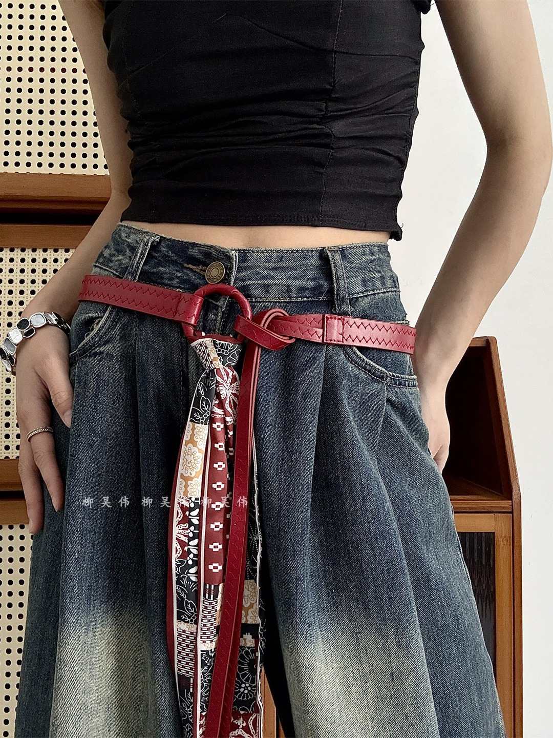 Liu Wuwei's High-End Accessory, a Red Silk Scarf Belt to Wear with a Dress, Waist-Cinching Knotted Belt for Women, Decorative for Jeans