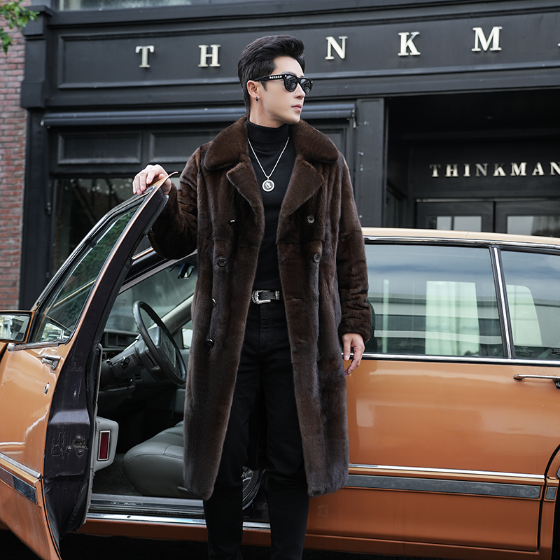 Imported Mink Fur Coat for Men, Full-Length Mink, Machgeni Velvet-Grade Mink Fur, Over-The-Knee Length