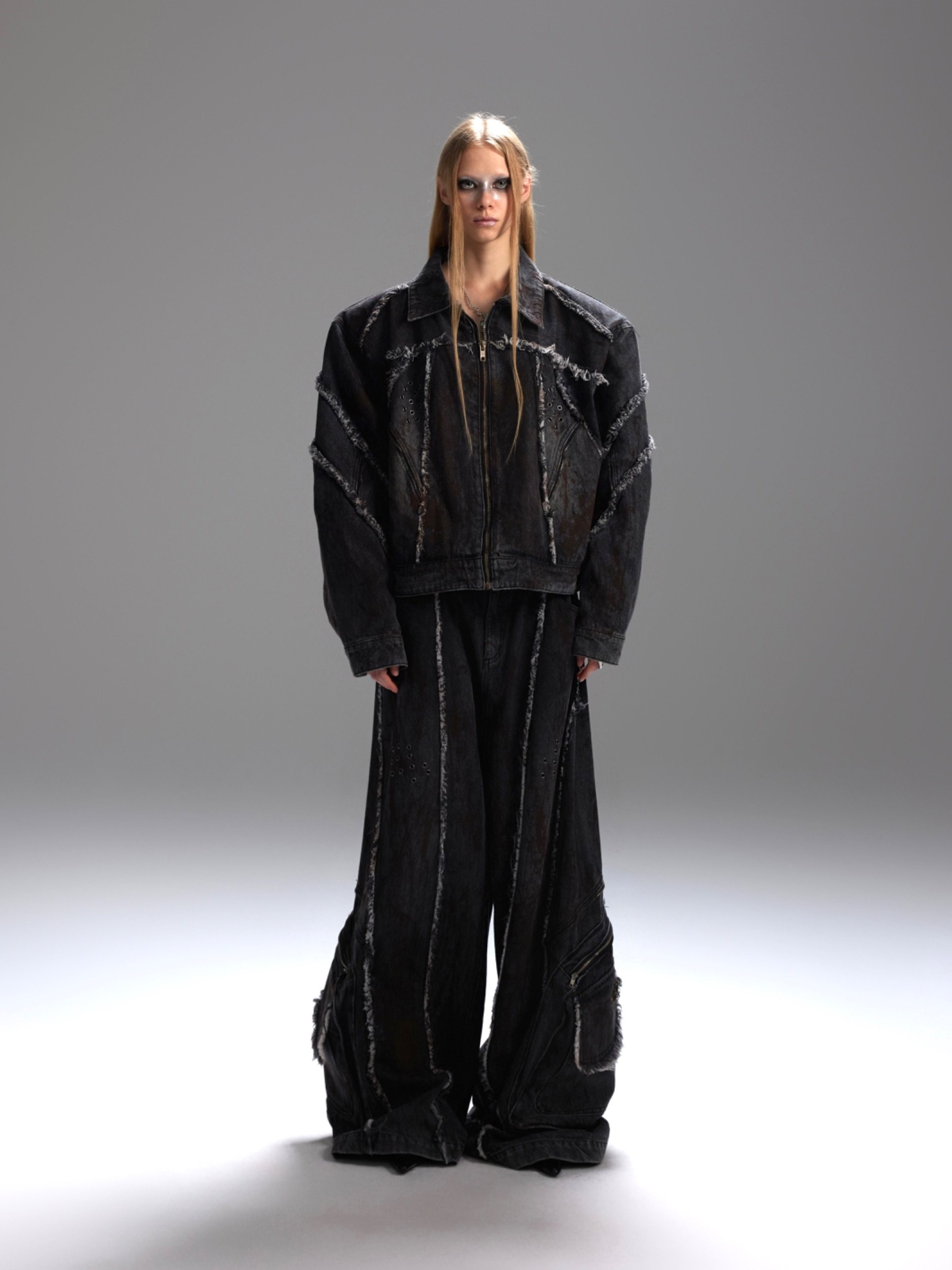 Meiyang Big Pin No. 4 Denim Jacket Jacquard Lapel Buttoned Jacket Top [Wide]