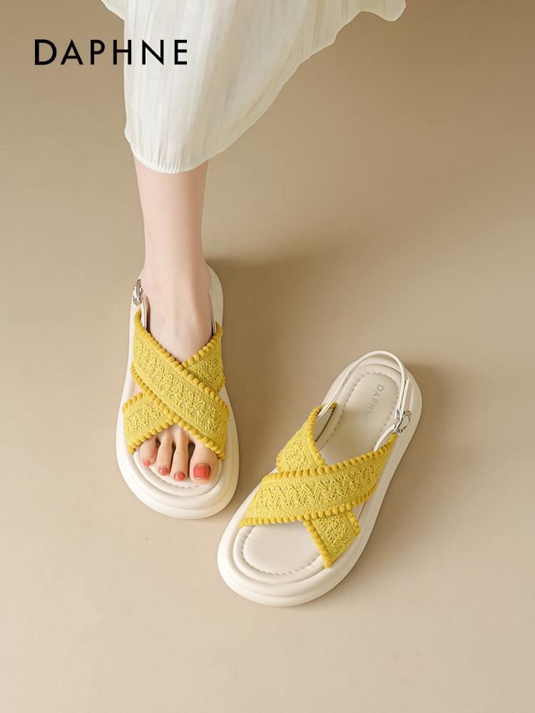 Daphne Yellow Platform Sandals for Women, Suitable for Outdoor Wear in Summer 2025, New Style, Dual-Wear, Comfortable, Very Attractive, Popular Sandals