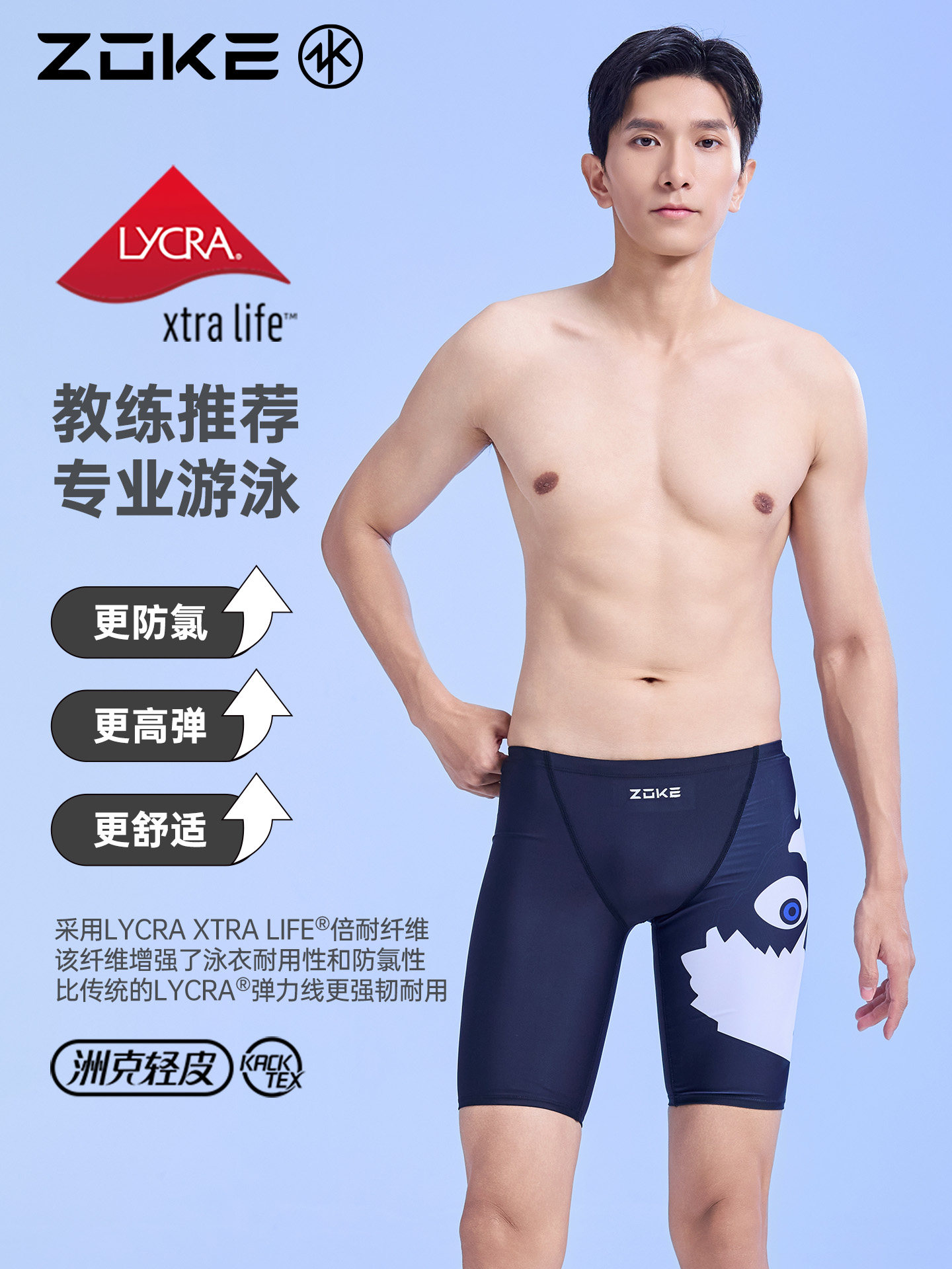 Zoke Men's Swimming Trunks, Five-Point Length, Professional Swimming Training, Large Size, Chlorine-Resistant, Quick-Drying, Competition Student Swimwear