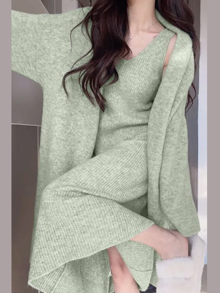 A Complete Set of Early Autumn Outfits, Knitted Cardigan Jacket, Autumn and Winter Camisole Dress, Sweater Dress, Two-Piece Suit Dress