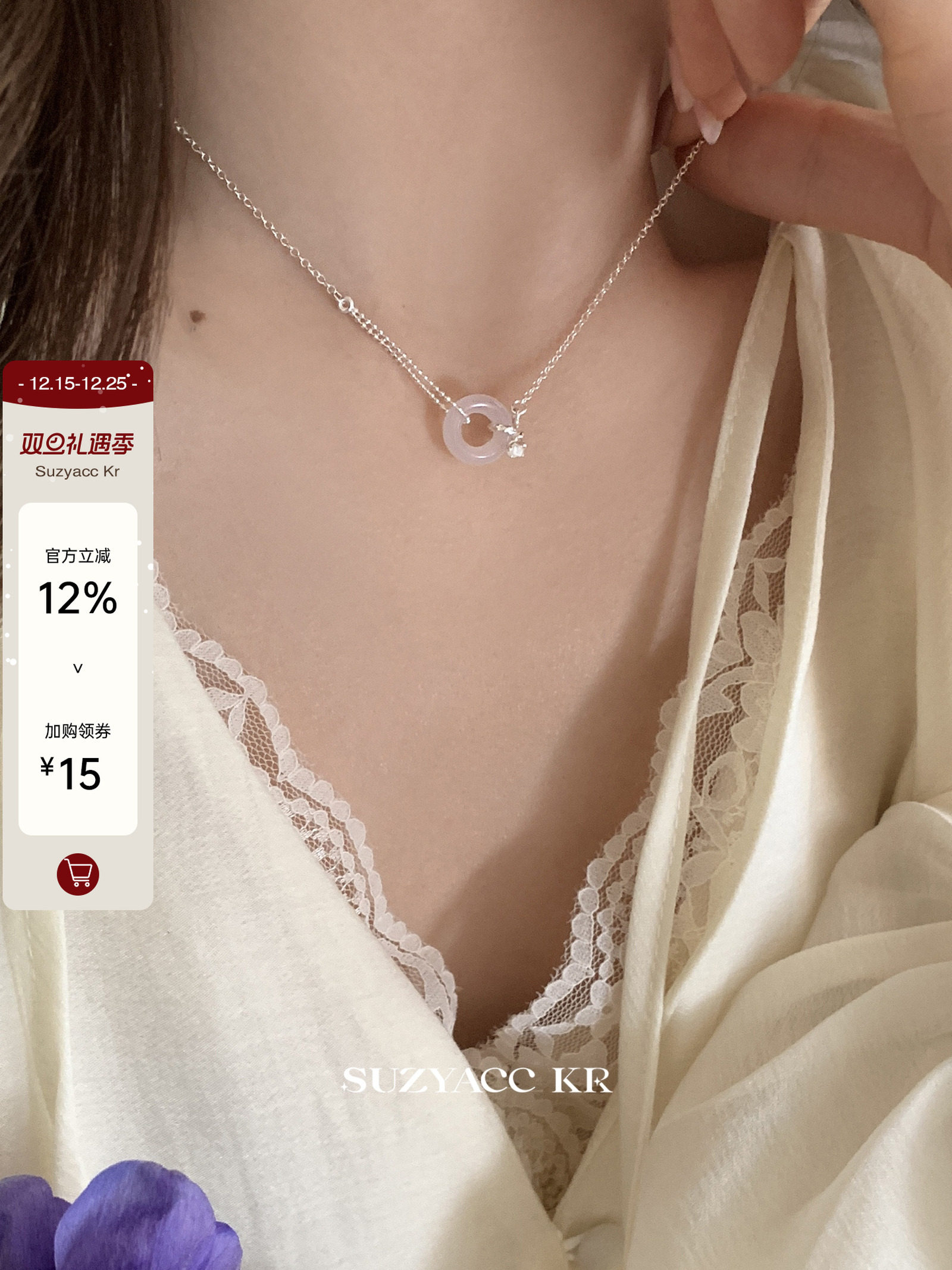 Suzyacc Kr Original Design New Chinoiserie White Agate Peace Buckle Sterling Silver Necklace for Women 2024 New Clavicle Chain