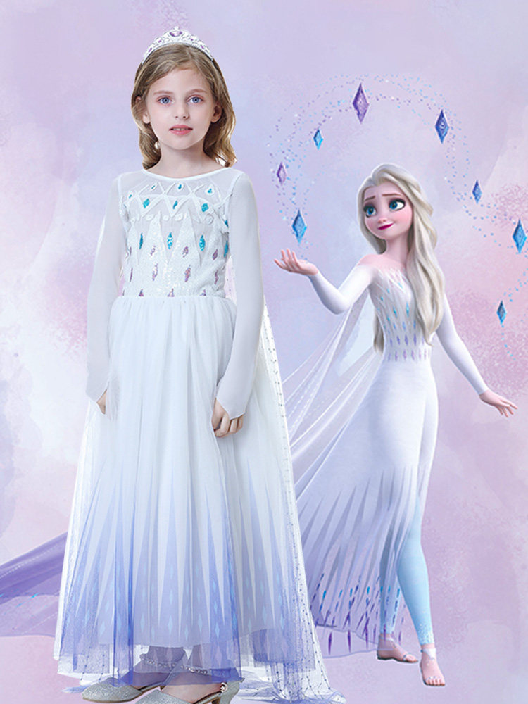 Elsa Princess Dress for Girls, Spring and Autumn, Frozen, Elsa, Halloween, Floor-Length, Disney, Elsa, Little Girl Clothes