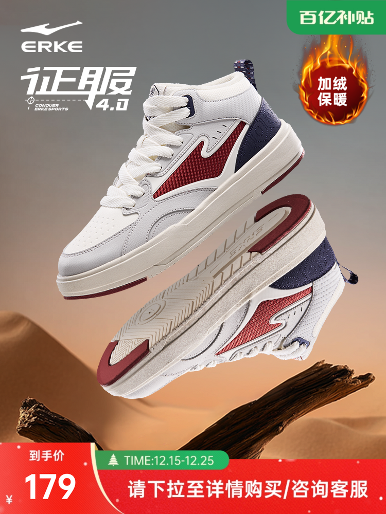 Conquer Hongxing Erke Men's Sneakers, New Winter Model, Large Cotton Shoes with Added Fleece, Men's High-Top Thickened Sneakers