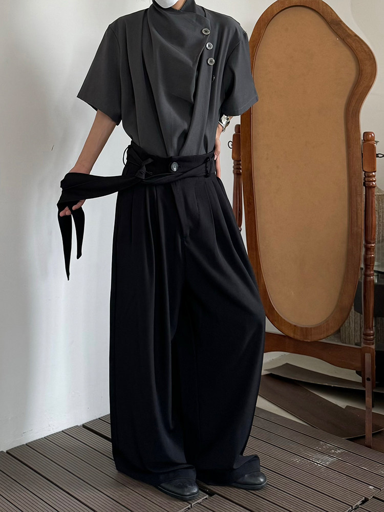 14Gsl Simple and High-End Design Lemaire Trousers, Loose High-Waisted Unisex Style Suit Trousers with Drape Effect