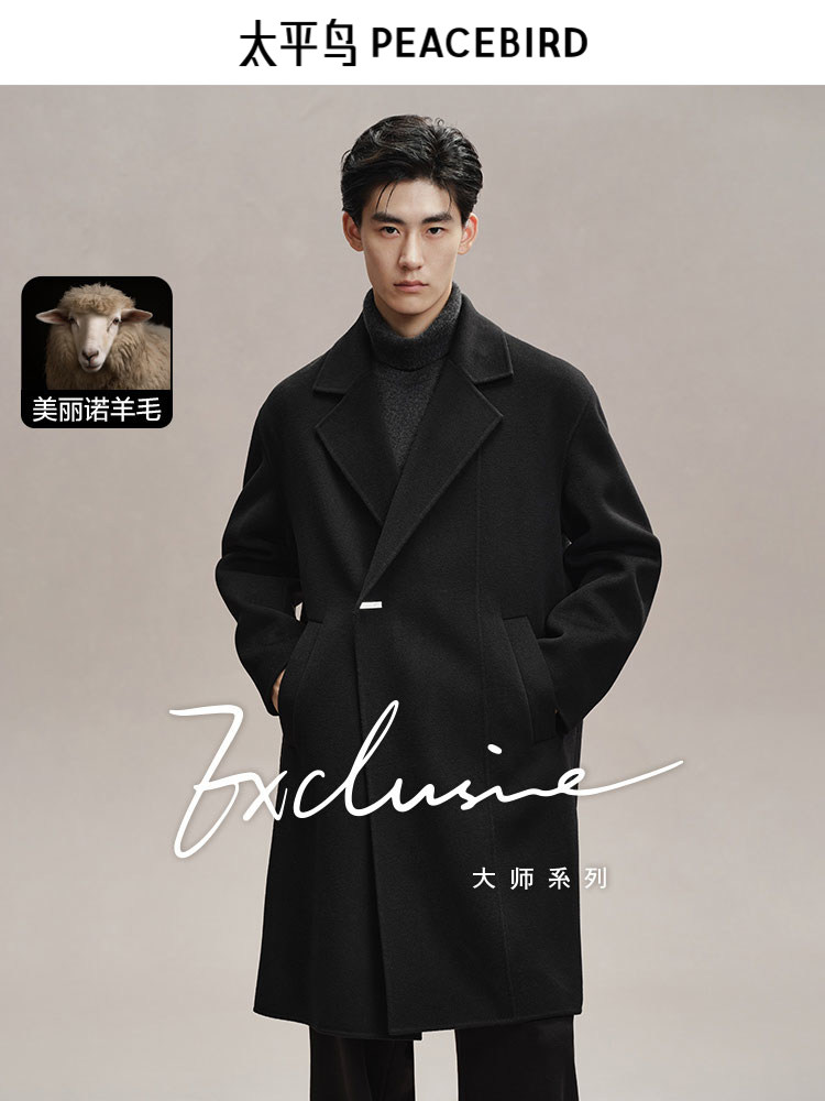 Peacebird Men's Woolen Coat New Winter Style Loose One-Button Long Black Jacket