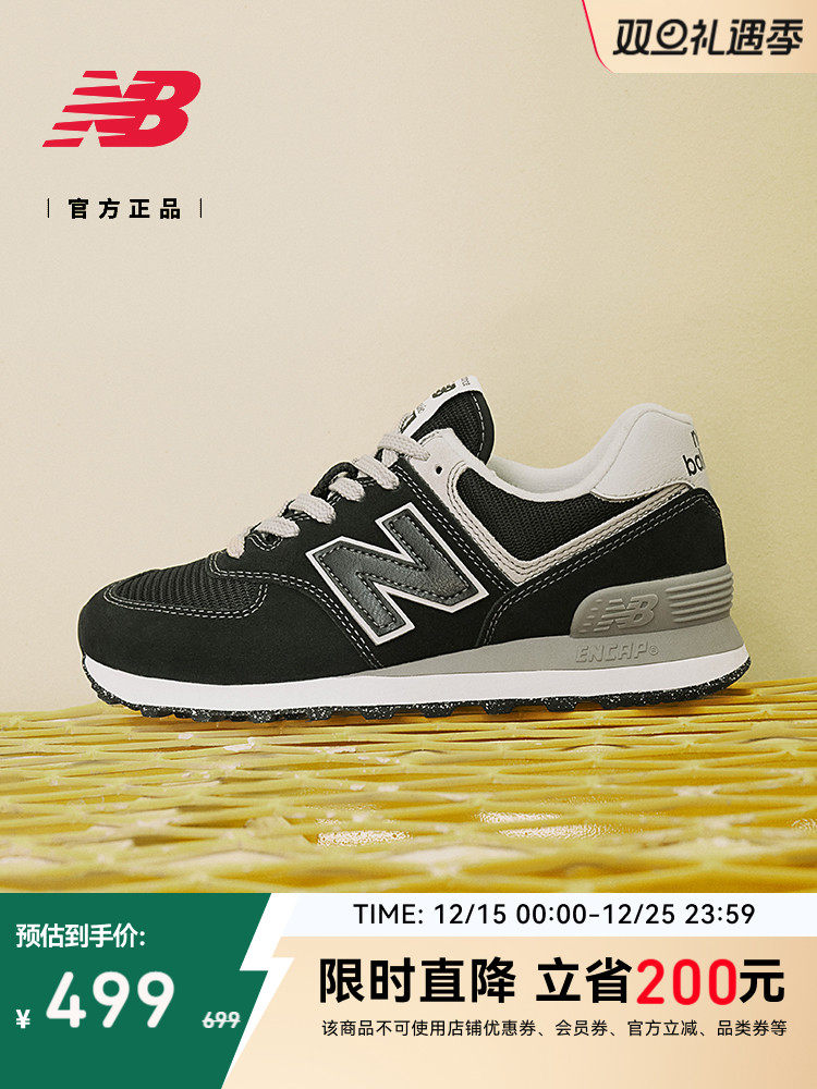 New Balance Nb Official Authentic Retro Versatile Black Casual Shoes for Men and Women Ml574Evb