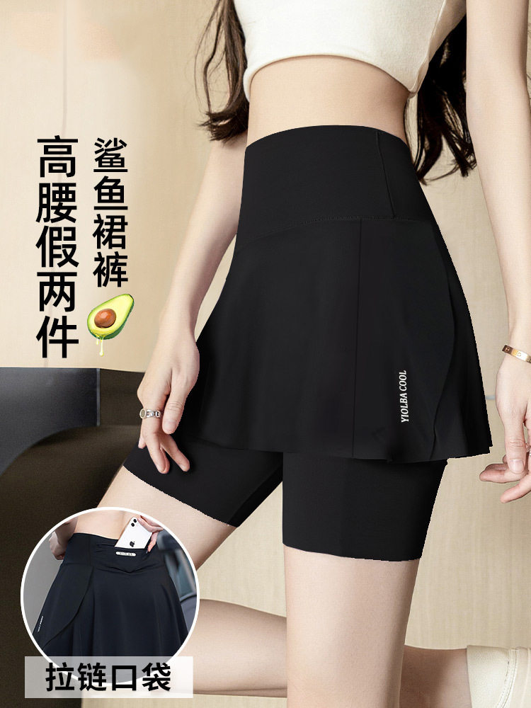 Ice Silk Quick-Drying Five-Point Sports Skirt for Women, Badminton Wear, Tennis Skirt, Yoga Fitness Running Shorts, Half Skirt