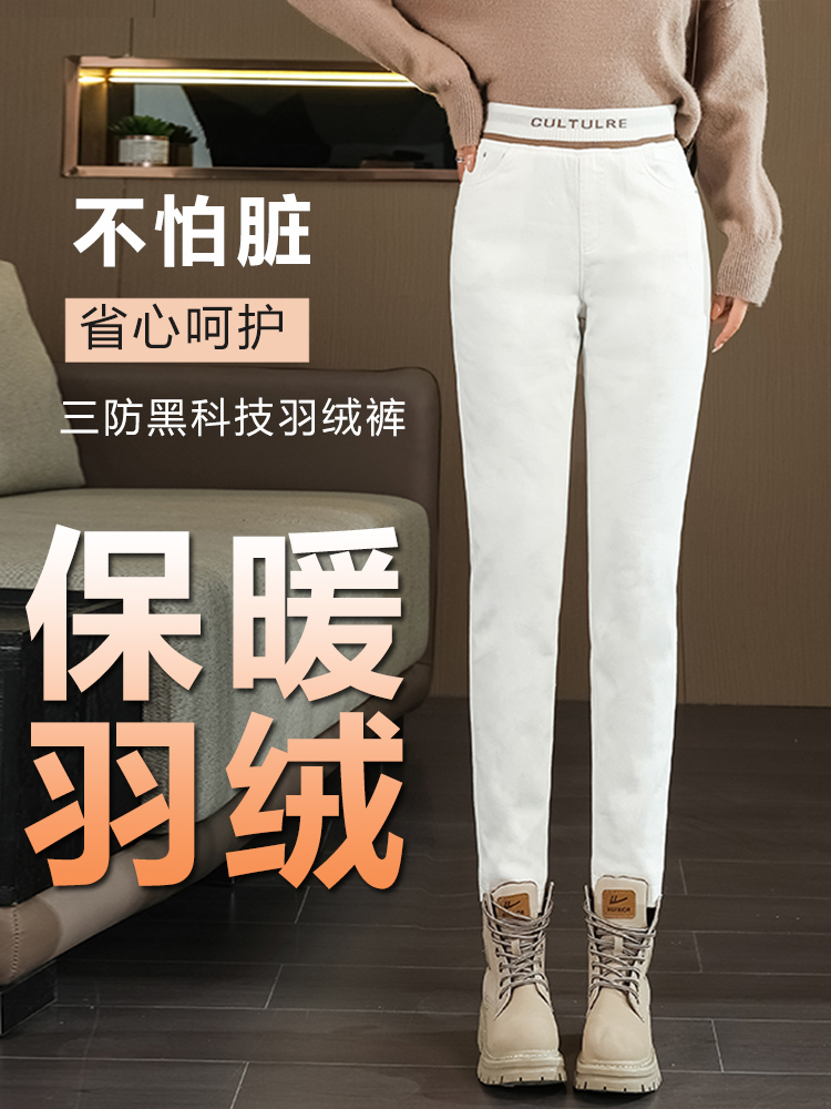 White Denim Down Pants Women's Outwear Winter high waist silm Slim Looking White Duck Down Heattech Skinny Jeans Pencil Pants Boots Pants