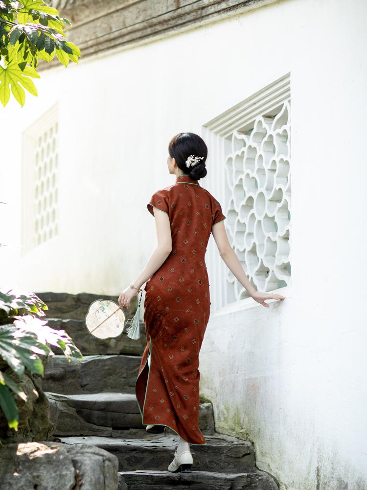 Palace Rings | a City Wind Blocks | Silk Red Cloud Gauze Printed Retro Republican Style One-Piece Ancient Traditional Cheongsam