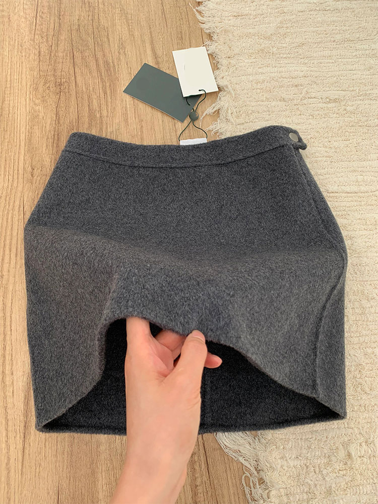 Recommended! Vintage Versatile One-Piece Gray Woolen Short Skirt for Women, Early Spring High-Waisted A-Line Skirt