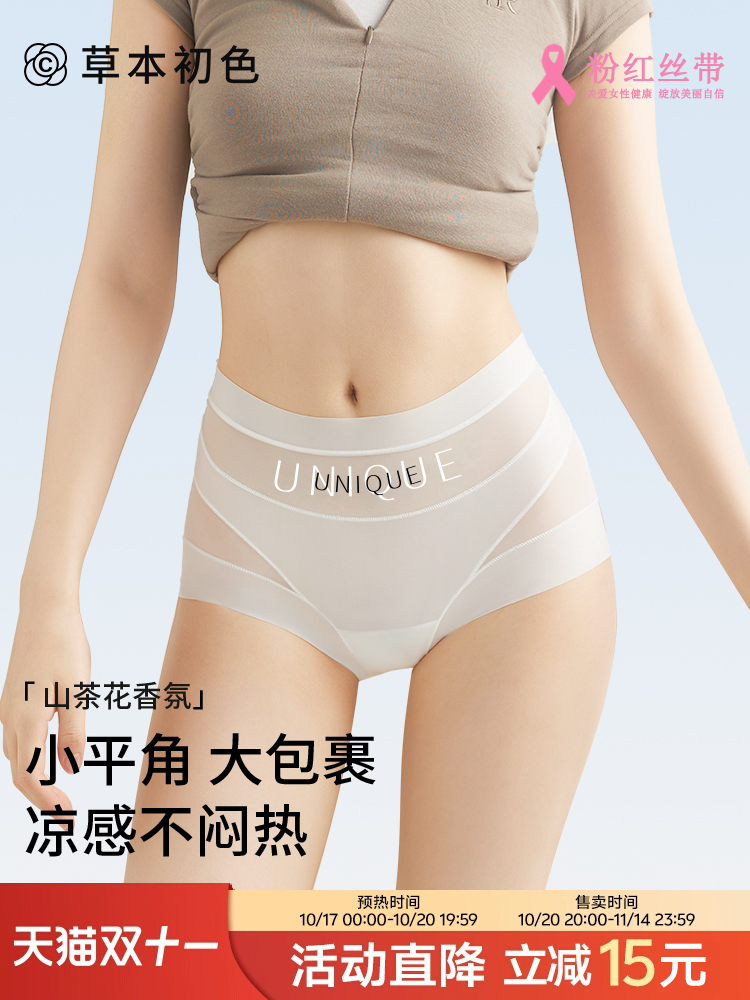Herbal Natural Color Autumn and Winter New Camellia Essential Oil Seamless Boxer Briefs Mid-High Waist Light Tummy Control Full Coverage Women's Underwear