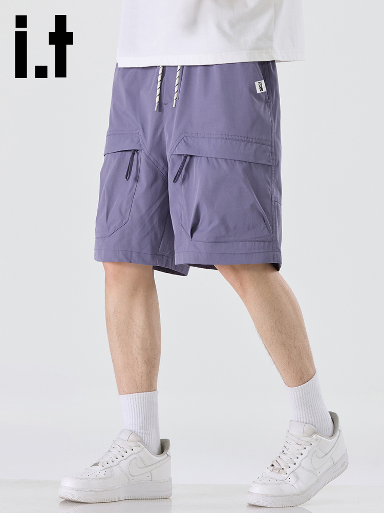 It Izzue Purple Five-Point Sports Shorts for Men, Loose Fit, Summer Thin Style, Outdoor Workwear, Quick-Drying Mid-Length Pants Y