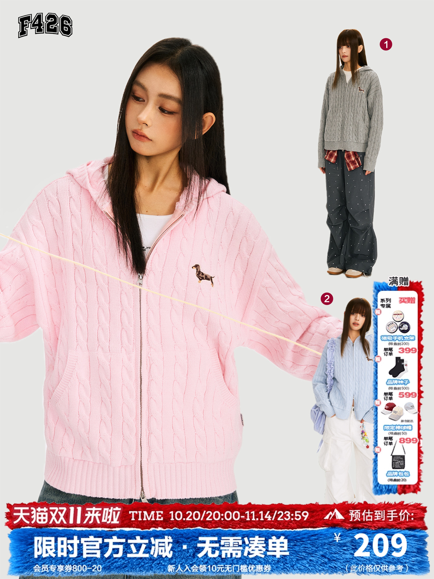 【F426 Official Store】National Trend Brand Spring New Casual Loose Vintage Twist Knit Hooded Cardigan Sweater