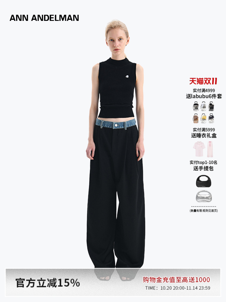 【Celebrity Style】Ann Andelman Official Store Denim Waistband Patchwork Straight-Leg Trousers