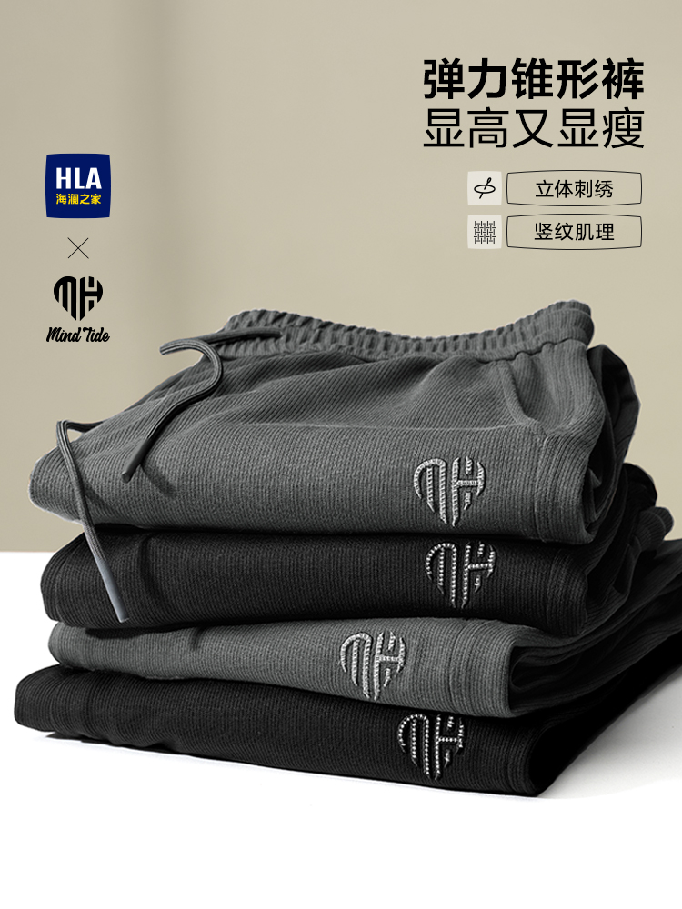 Hla/Heilan House Drawstring Elastic Sweatpants Autumn and Winter New Style Fleece-Lined Optional Embroidery Tapered Casual Pants for Men