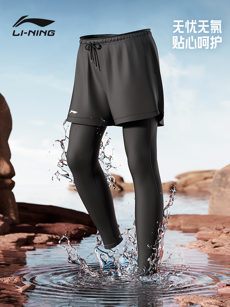 Li-Ning Men's Swim Trunks Anti-Embarrassment Long Surf Pants Quick-Drying 2025 New Swimwear Adult Sun Protection Swimming Gear