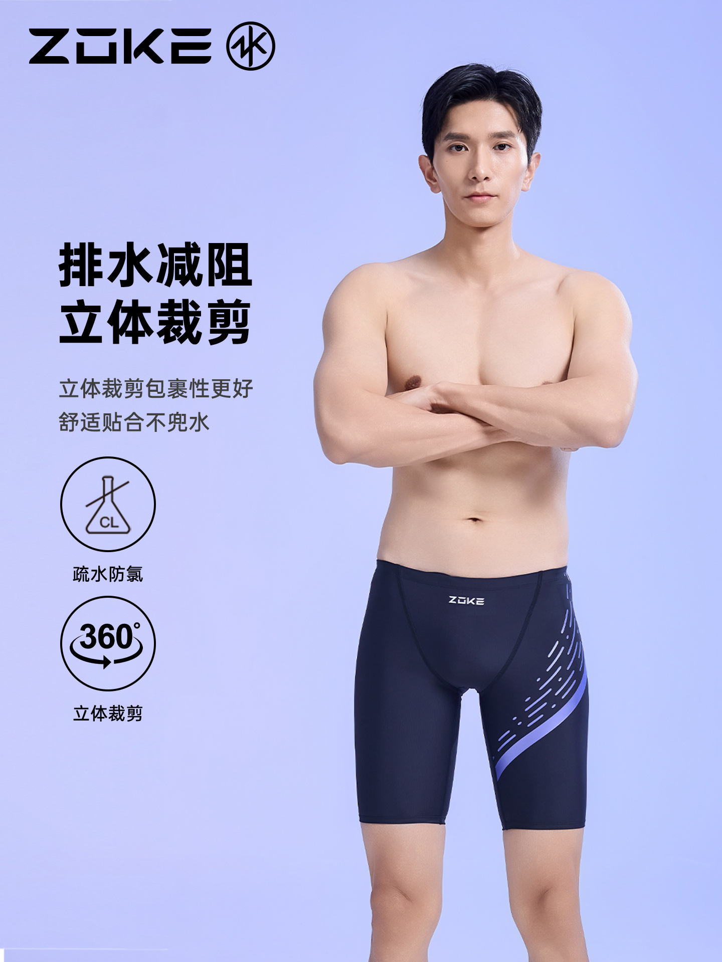 Zoke Men's Swim Trunks, Five-Point Length, Professional Swimming Training, Quick-Drying, Large Size, Anti-Embarrassment, Student Competition Swimwear