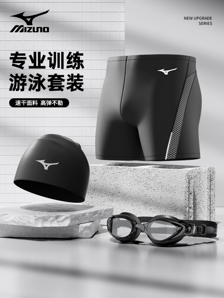 Mizuno Men's Swimming Trunks Anti-Embarrassment Quick-Drying Chlorine-Resistant Adult Square-Leg Racing Professional Training New Swimming Set