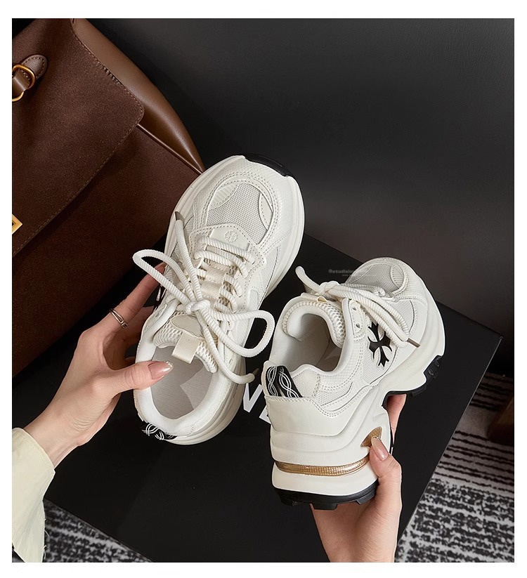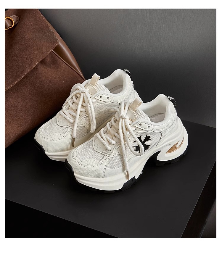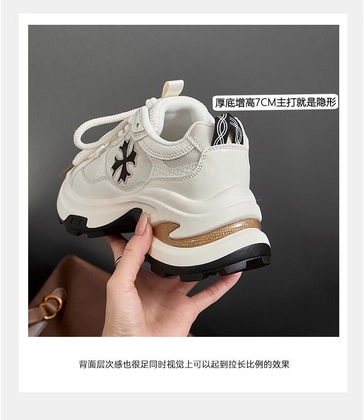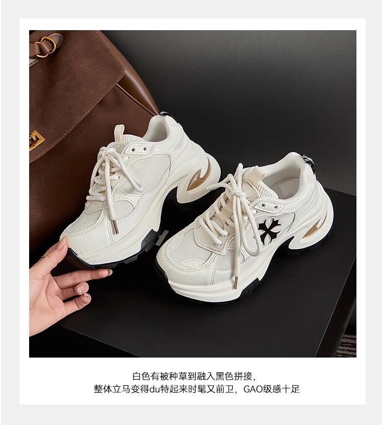 Hong Kong Thick-Soled Height-Increasing White Sneakers for Women 2025 Spring/Summer New Mesh Genuine Leather Petite Casual Sports Dad Shoes