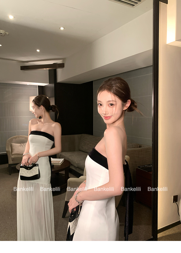 这款蝴蝶结抹胸连衣裙为派对而生,